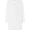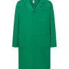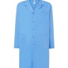 Bata de hombre. Cuello en V. Bolsillo en el pecho en el lado izquierdo y dos bolsillos delanteros en la parte inferior. Cinco botones frontales a tono. Cinturón en espalda.
