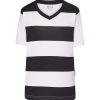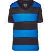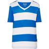 Camiseta de rayas horizontales de fútbol para niño con cuello de pico. Disponible en 7 colores y desde la talla 5/6 años hasta la talla S. (Para tallas más grandes, consult…