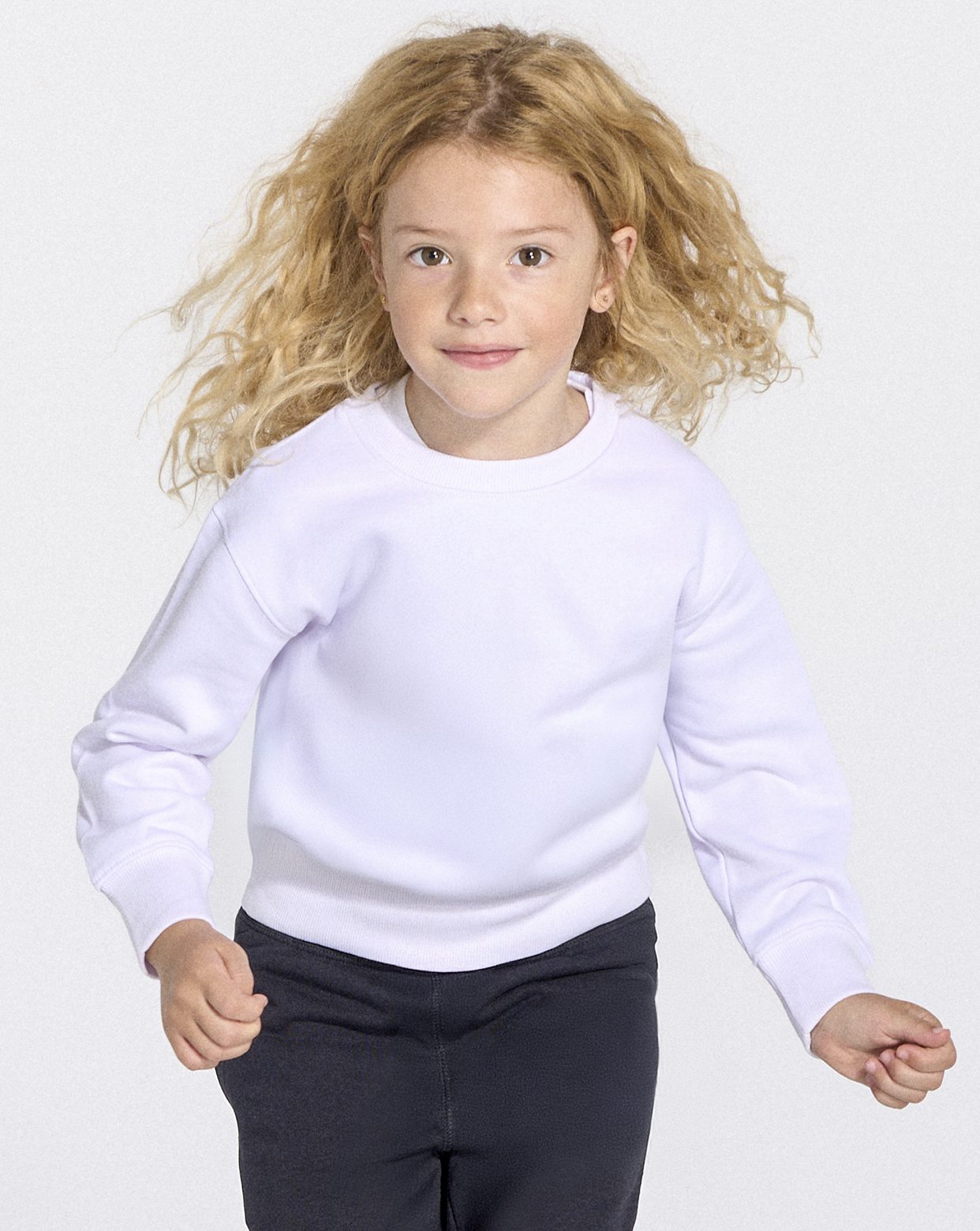 Sudadera clásica para niños con cuello redondo. Disponible en 13 colores y desde la talla 1/2 años a la 12/14.  Por su composición más alta en poliéster, algunos de nuestros clientes utilizan la sudadera blanca para sublimar.